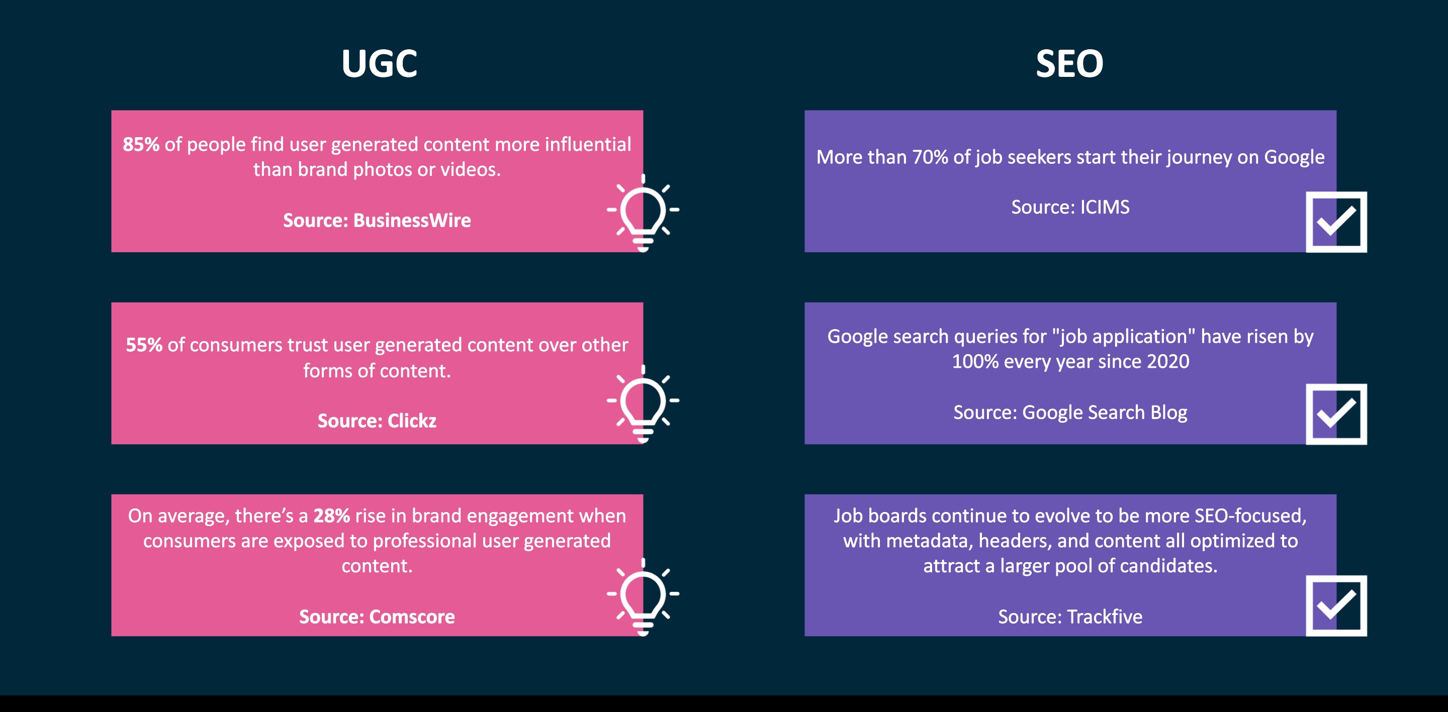 If you’re struggling with low visibility, talent haven’t heard of you, or you’re not ranking well for key search terms, a combination of SEO and social media strategy will fix it.